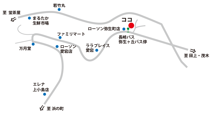 長崎バス弥生ヶ丘バス停留所より歩いて1分。